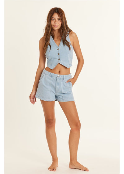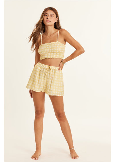 Stay Sunny, Honey - in these Le Sol Woven Shorts, featuring a double gauze fabric and a drawcord-encased elastic waistband. Plus, never lose your essentials with the convenient on-seam pocket!